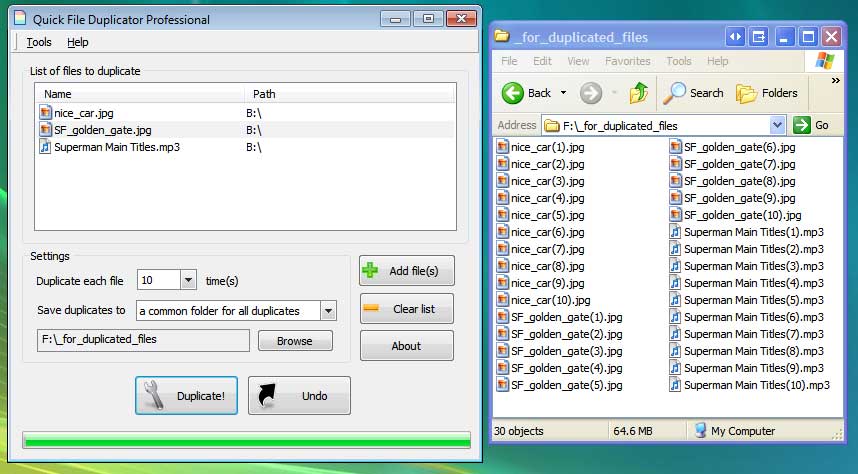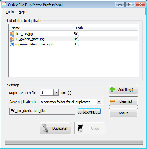 | Select unlimited number of files to duplicate |
